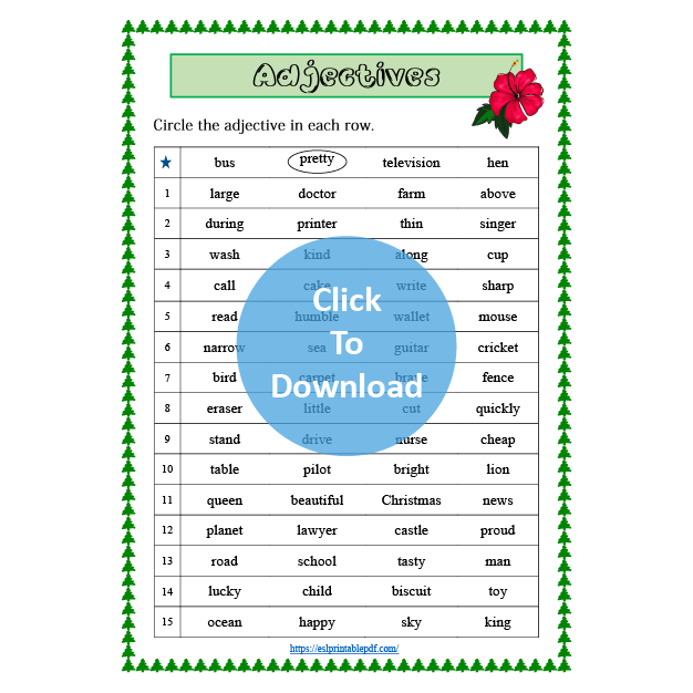 This worksheet is suitable for beginners. The students have to find the adjectives and circle them.