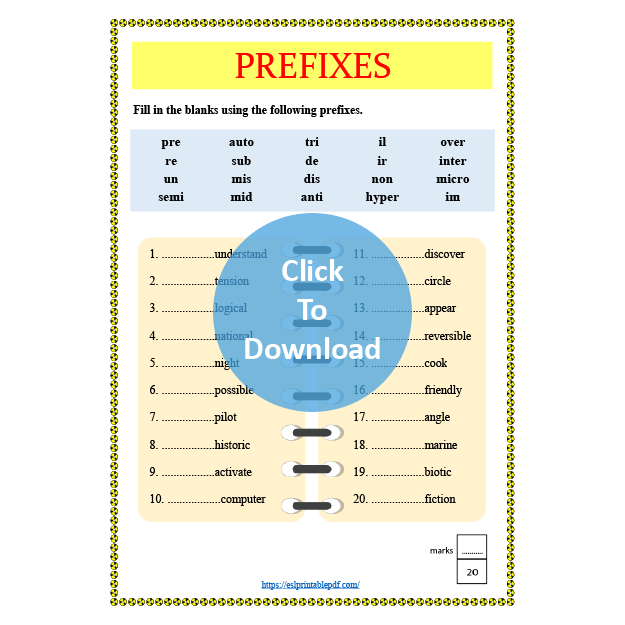 This worksheet is about prefixes. Fill in the blanks using the suitable prefixes.