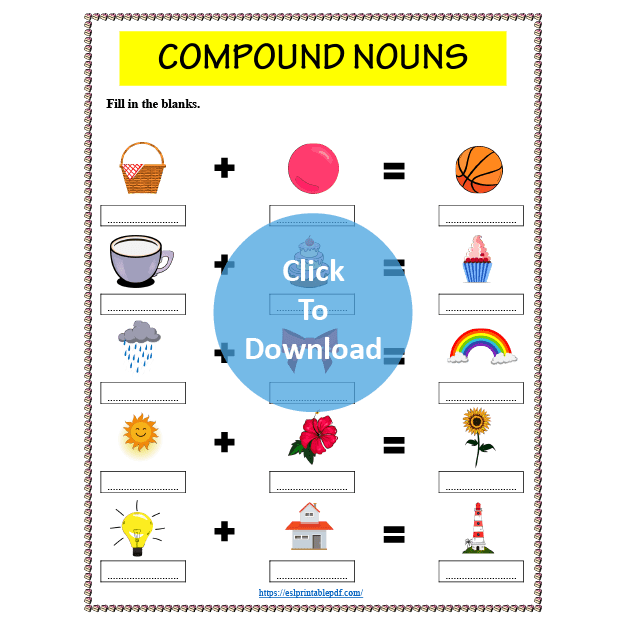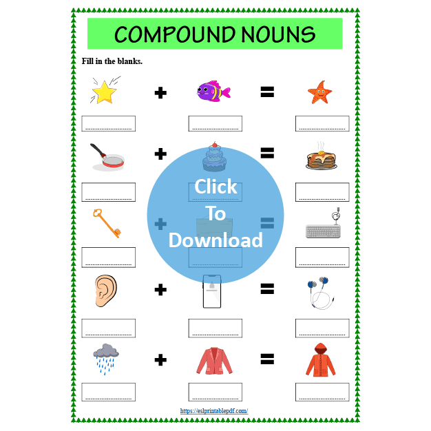 This worksheet is for elementary learners. The students can practice compound nouns and also test their vocabulary strength.