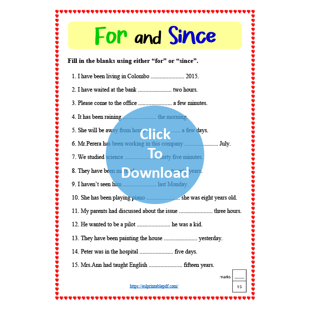 Let students complete the sentences using for or since. The sentences used in the exercise are not hard.