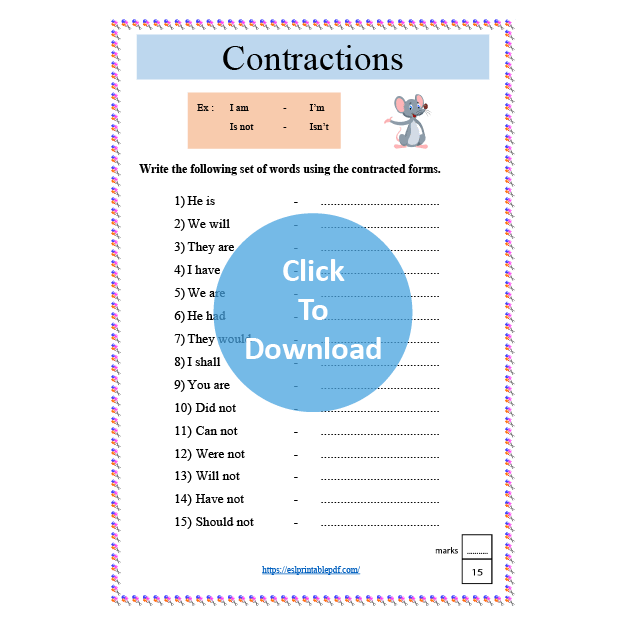 Students will learn how to use the apostrophe correctly when two words are joined. This worksheet is suitable for beginners.