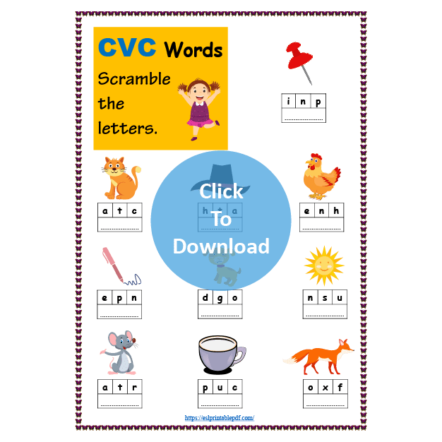 This worksheet is suitable for kids and beginners to practice CVC spelling.